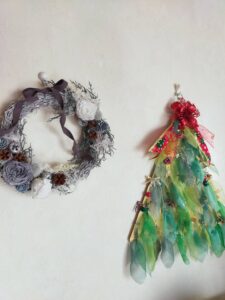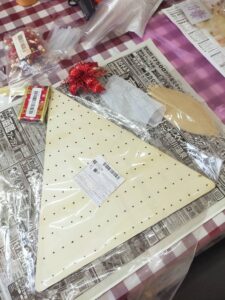 縦横35㎝のクリスマスツリー形壁掛け飾りを製作。